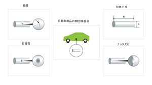 高品質部品を求める産業界のニーズに応えて、40年を超える期間、ラインスキャンカメラや検査装置を開発。新しく展示されたのは円筒状表面外観検査装置。製造工程に組込、円筒状部品の表面不良(傷・錆・異物・形状不良等)の高速検査・解析を可能にする独自装置です。