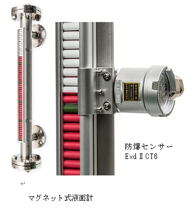 マグネットの反発・吸引を効果的に利用した構造で、コラム内のフロート磁力でローターを回転させ、液位置を明確に示してくれます。ガラス不使用で安全性が高く、ゲージの破損や液漏れがないので、消防法に定められた危険物のタンクに最適なマグネット式液面計です。遠隔センサー取付けで、コンピューターや記録計等に接続も可能となるオプションも充実。