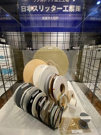 この度の企画展では、医薬品、衛生材、電材から建材、土木に至る多くの業界で活躍中のスリット加工製品を展示いただいております。