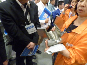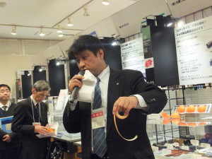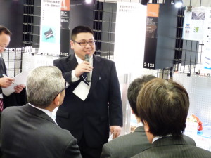 MOBIO Cafe Meeting on March 23 was a memorable gathering, celebrating its 100th session. All participating exhibitors (twelve) joined to explain technologies. It was another step forward to develop new business among participating parties. MOBIO Café Meeting is a cross-industry gathering, held twice a month. It offers opportunity to participants asking any questions freely.