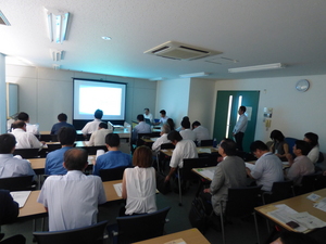 The cross-industry meeting in the MOBIO Tech Hall is filled with topics. Companies from Neyagawa City exhibition in August explained their state-of-the-art technologies on August 2.