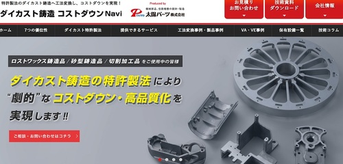 The new Japanese website "Die Casting Cost Reduction Navi" was opened by TAIYO PARTS explains that TAIYO can produce die castings even in small lots by changing the production method using their patented unit die system.