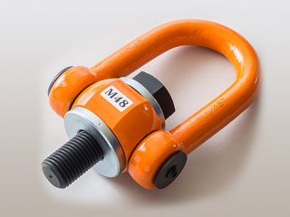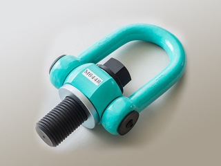 守りから攻めヘ―。堀川社長の号令のもと、同社は積極路線へシフトチェンジする。その象徴が、回転式多機能吊上金具「マルチアイボルト」への取り組みだ。従来の吊上作業では、アイボルトを重量物の側面に取り付ける"横吊り"は、ボルト部の破損の恐れがあり禁止されていた。「マルチアイボルト」は、その横吊りにあえて挑戦した同社の開発製品。フックやワイヤー等を通すシャックルが吊上軸に対し360度回転、吊り方向に対しても180度可動し、常に適正な角度を保つ。これにより、横吊り、斜め吊り、引き起こし作業が安全に行えるようになった。