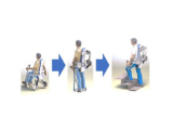 また、パワーアシストスーツ形態と電動車いす形態の2つのかたちに自在に変形する、次世代電動車いすを自社製品として開発中です。
