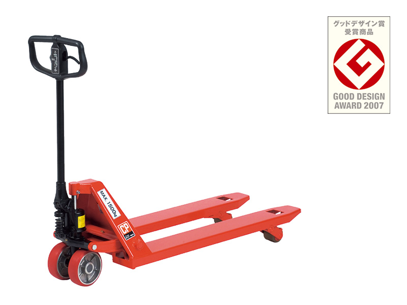 2007年度グッドデザイン賞を受賞した「キャッチパレットトラック」。ハンドル部を従来の鉄から強化樹脂にして、高い操作性と自在なハンドリングを実現