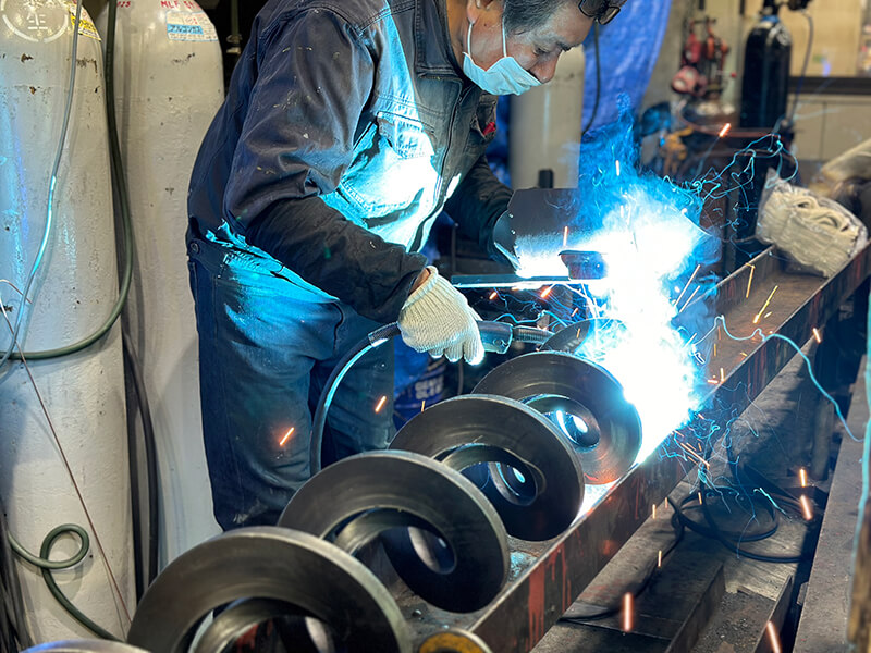株式会社新光工業の主力製品は無軸スクリューコンベアである。スクリューコンベアとはトラフ(U字溝)やパイプの中に軸を通し、その軸に羽根を螺旋状に取り付けて軸を回転させることにより処理物を搬送する装置のことだが、同社が製造販売するスクリューコンベアには軸がない。『有軸』と『無軸』。その違いはなにか。「それは搬送する処理物が軸に絡まないこと」と同社の後藤氏は話す。