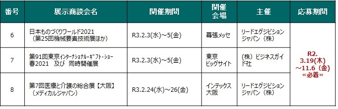 各展示商談会の詳細は、主催者の公式ホームページでご確認ください。